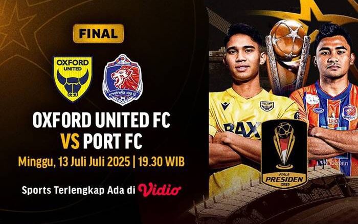 ฟุตบอล PIALA Presiden 2025 รอบชิงชนะเลิศวันนี้ จะเป็นการพบกันระหว่างตัวแทนจากไทยลีก การท่าเรือ เอฟซี พบกับ ออกซ์ฟอร์ด ยูไนเต็ด จากเดอะแชมป์เปี้ยนชิพ อังกฤษ เวลา 19.30 น. ตามเวลาประเทศไทย ณ สนาม ศรีจาลัก ฮารุปัต ประเทศอินโดนีเซีย ถ่ายทอดสดทาง 𝑽𝒊𝒅𝒊𝒐